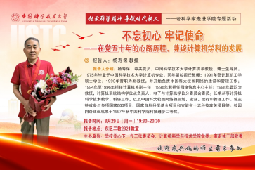 杨寿保教授于1972年5月进入我校无线电电子学系计算机专业学习,同年光荣加入中国,1975年毕业后留校任教,1998年起担任计算机系教授、博士生导师。杨寿保教授长期从事计算机科学技术教学、科研工作,以及中国科大校园网络的规划、建设、运行和管理工作,为学校发展做出了重要贡献。报告会上,杨寿保教授从在党五十年的心路历程谈起,回顾了自己的成长经历和入党初心。杨寿保表示,初心就是信仰,初心就是责任,初心就是担当,自己的入党初心便是信仰,听党话跟党走,履行党员义务,对党忠诚,积极工作,以身作则,凡事冲锋在前,为事业奋斗终身。