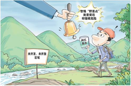 “野景点”可以说是一把“双刃剑”。它代表着原生态、奇特、小众、免费,但也不可忽视其巨大的安全隐患和生态问题。对于游客来说,首先要对受追捧的“野景点”祛魅,不偏听偏信,回归理性旅游的本质;其次要增强安全意识,不要为追求一时的刺激,用生命打卡“野景点”,唯有尊重生命、敬畏自然,才能让旅游真正成为享受美好生活的方式。