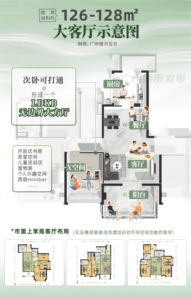 |主套小家化示意图(本宣传物料仅为创意户型设计展示,最终方案以政府批复、双方签订的《商品房买卖合同》及其附件、补充协议约定和实际交付为准。)