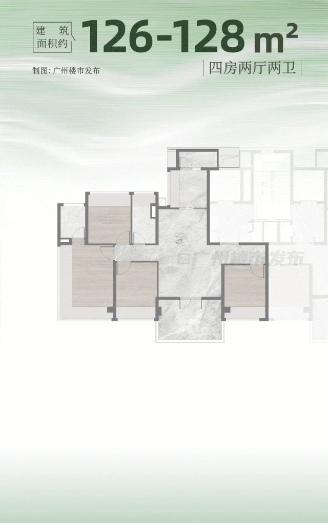 |约126-128平户型示意图(本宣传物料仅为创意户型设计展示,最终方案以政府批复、双方签订的《商品房买卖合同》及其附件、补充协议约定和实际交付为准。)