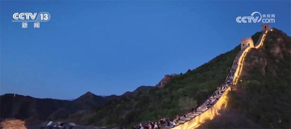 在密云,司马台长城也在夜间被“点亮”,如火龙般在山间蜿蜒。游客可以提灯夜游,感受古长城的磅礴气势,也能泛舟河面,远望山峦朦胧,近观灯火辉煌。景区还推出音乐、舞蹈、诗歌和绘画相结合的演出活动,无人机在夜空中的飞行表演也给市民游客带来了震撼的视听享受。