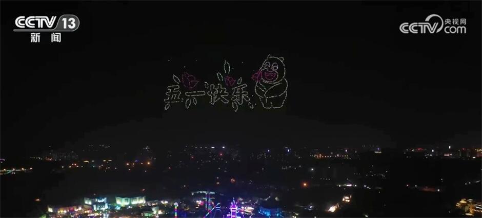 在郑州的一家大型游乐园,千架无人机组成巨幅“五一快乐”的祝福语,还有梦幻星河大巡游、篝火狂欢派对等夜游项目吸引了大批游客。在这个海洋公园里,游客可以近距离观赏5万多只极地海洋动物,海洋大戏、国潮快闪、机甲巡游等节目轮番上演。