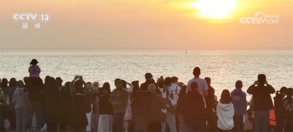 这两天,浙江海盐县的观海园吸引了来自全国各地的游客,共赏“最美日出”。凌晨五点多,晨曦微露,海盐县观海园的鱼鳞海塘边,近万人静静守候,当第一缕阳光刺破云层,游客们纷纷拿出手机、相机记录下这动人一刻。